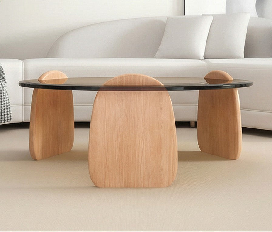 Elevate your living room with the CF003 Modern Round Glass Coffee Table, a beautifully designed centerpiece that blends minimalism, elegance, and artistic form. Measuring 80cm in diameter with a 40cm height, this table offers the perfect balance of visual impact and practicality for modern homes. The standout feature is the smoked tempered glass top, which adds depth and sophistication while remaining durable, heat-resistant, and easy to maintain. Its subtly tinted finish reflects light beautifully, giving your space a warm, upscale atmosphere. Supporting the glass top are four sculpted solid wood petal-shaped legs, providing exceptional stability with a unique designer aesthetic. Their soft organic shape pairs effortlessly with curved sofas, neutral interiors, and contemporary room layouts. Perfect for displaying décor, serving drinks, holding books, or creating a stylish focal point, the CF003 coffee table brings premium design and practicality into any living space.