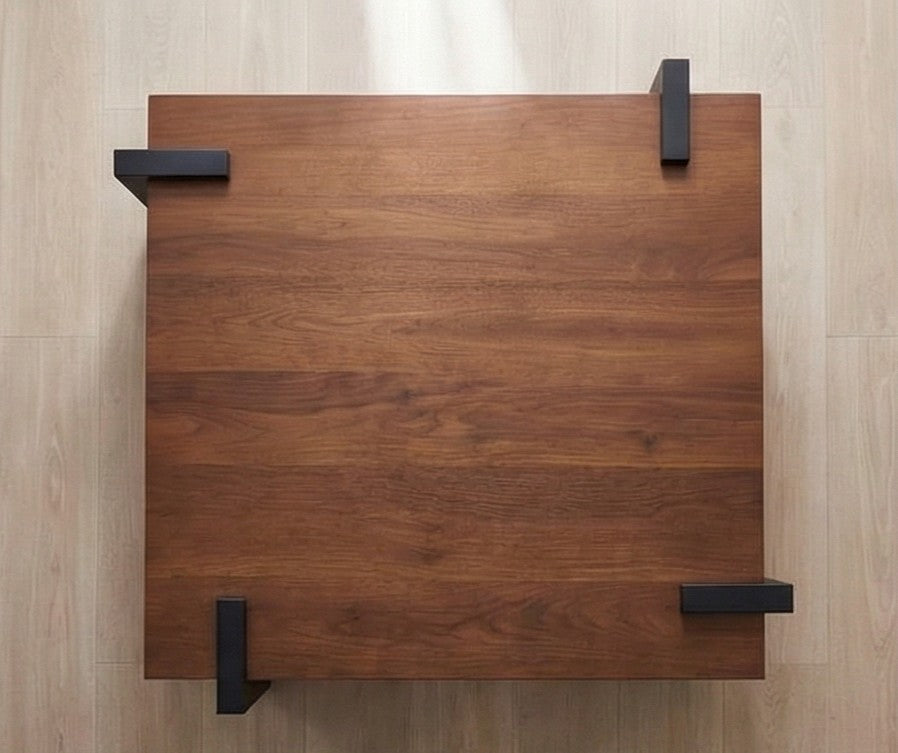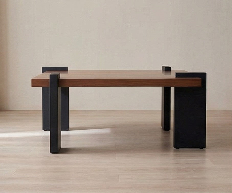 Add a bold and modern centerpiece to your living space with this Walnut Wood Square Coffee Table, designed to deliver both strength and style. The tabletop features a premium walnut wood finish, showcasing beautiful natural grain patterns that bring warmth and elegance into any room. The design is supported by sturdy black metal legs, engineered for long-lasting durability and excellent stability. Their thick, architectural shape creates a striking contrast with the warm wood top, making this table a standout piece in modern, industrial, Scandinavian, or minimalist homes. With its low-profile, wide layout, this coffee table offers plenty of surface area for décor, beverages, books, and everyday use. Whether you're hosting guests, enjoying quiet evenings, or elevating your interior aesthetic, this table offers unmatched style and functionality.