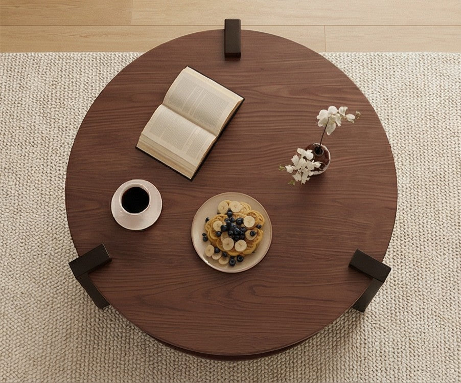 Bring timeless beauty and practical functionality to your living room with the MX156 Modern Round Coffee Table, expertly crafted from premium engineered wood and finished in a deep, luxurious dark walnut tone. Its smooth round silhouette and natural wood texture elevate any space with warm, inviting character. Designed with both elegance and convenience in mind, the MX156 features a two-tier structure—a spacious top surface for your daily essentials and a lower shelf ideal for books, baskets, décor, or storage trays. Its sturdy solid-wood legs ensure long-lasting stability, making it a perfect addition to busy homes, apartments, and stylish living areas. Whether placed in a modern setup, a cozy rustic environment, or a contemporary minimalist room, the MX156 effortlessly enhances your interior while providing practical everyday functionality.