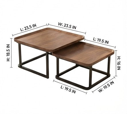 Add style, versatility, and modern functionality to your living room with this Walnut Nesting Coffee Table Set, designed to blend warm natural textures with sleek industrial design. Featuring walnut wood veneer tops, each table showcases beautiful grain patterns that instantly elevate your décor. The smooth, rounded edges give the set a refined, contemporary look while making it safer for everyday use. Built with a powder-coated black metal frame, the tables offer excellent durability, stability, and a clean minimalist aesthetic. The nesting design allows the smaller table to slide neatly under the larger one—perfect for saving space, creating layered looks, or separating them to use around the room as needed. Whether used as a centerpiece, side tables, or multifunctional surfaces, this nesting set brings warmth, practicality, and modern elegance into your home. Ideal for apartments, contemporary living rooms, and any space that values stylish efficiency.