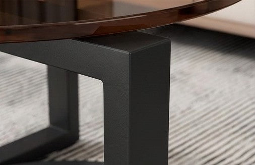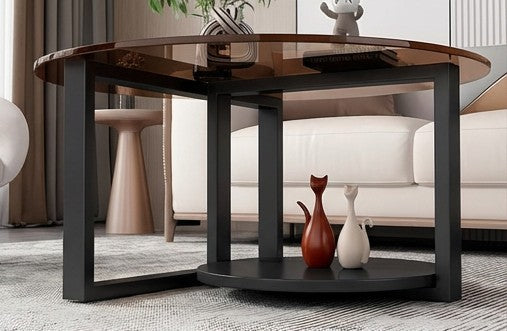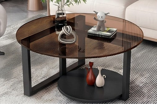 Transform your living room with this Modern Round Smoked Glass Coffee Table, crafted to deliver both high-end style and everyday convenience. The beautifully tinted tempered-glass tabletop creates a luxurious centerpiece that instantly elevates any space. Its warm smoked finish adds depth, richness, and a sleek reflective look that enhances your décor. Built with a durable black metal frame, this table offers long-lasting stability and a bold contemporary feel. The round silhouette softens the visual aesthetic, making it perfect for modern, minimalist, Scandinavian, or luxury-inspired interiors. A spacious full-circle lower shelf provides practical storage for books, magazines, trays, decorative accents, or living-room essentials—keeping your space clean, organized, and visually appealing. Whether you're hosting guests, styling your home, or simply enjoying a relaxing evening, this elegant smoked-glass table becomes the perfect functional centerpiece.